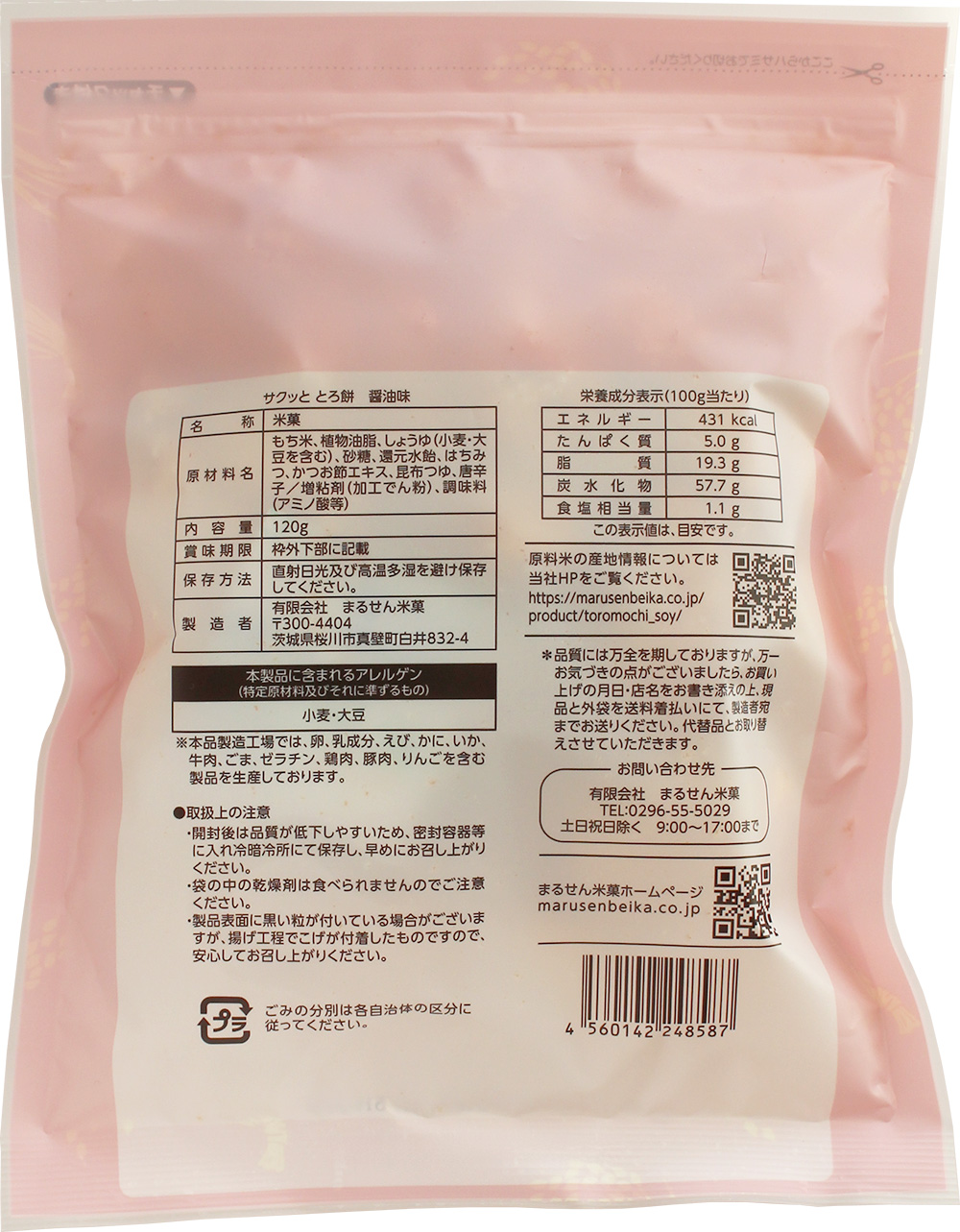 | 原材料名 | もち米、植物油脂、しょうゆ(小麦・大豆を含む)、砂糖、還元水飴、はちみつ、かつお節エキス、昆布つゆ、唐辛子/増粘剤(加工でん粉)、調味料(アミノ酸等) |